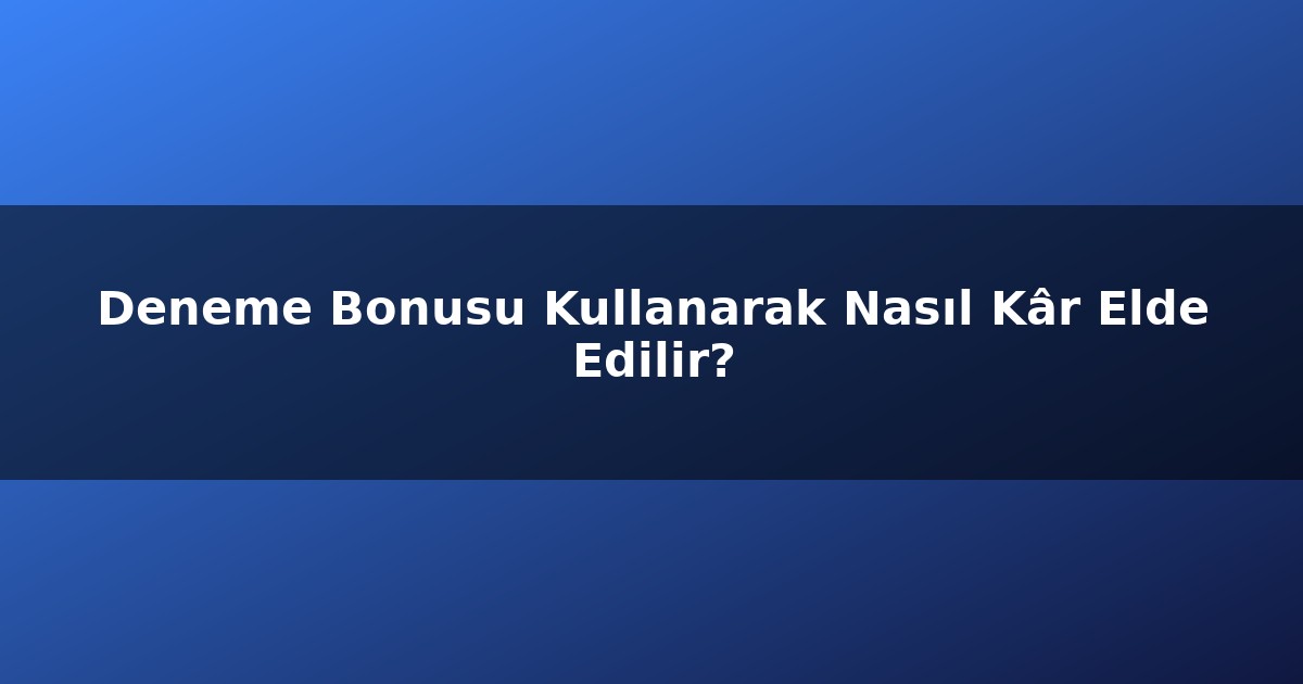 Deneme Bonusu Kullanarak Nasıl Kâr Elde Edilir?